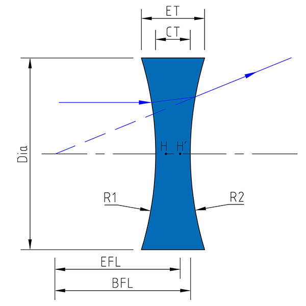 直徑:25.4mm;焦距:-100mm